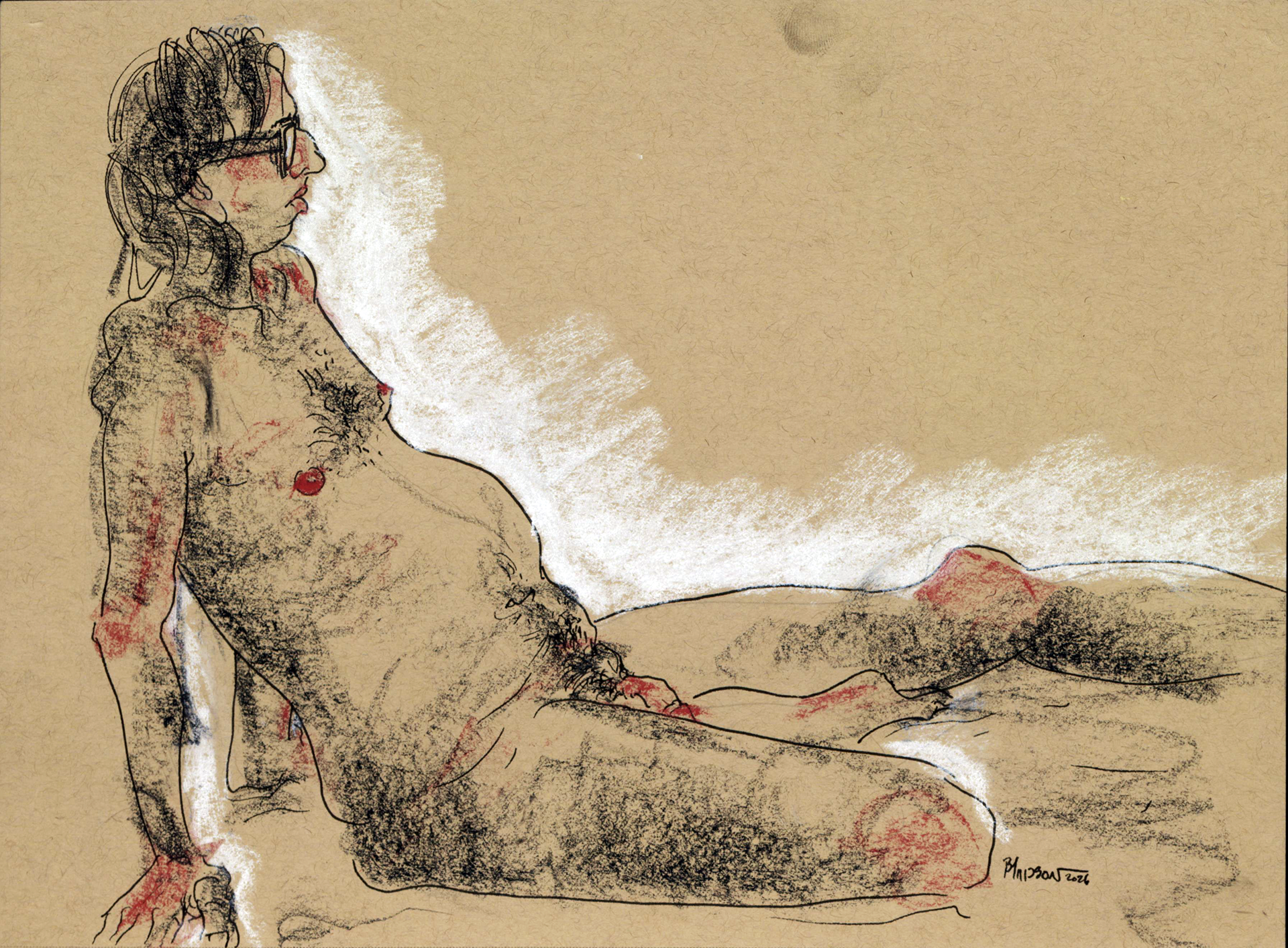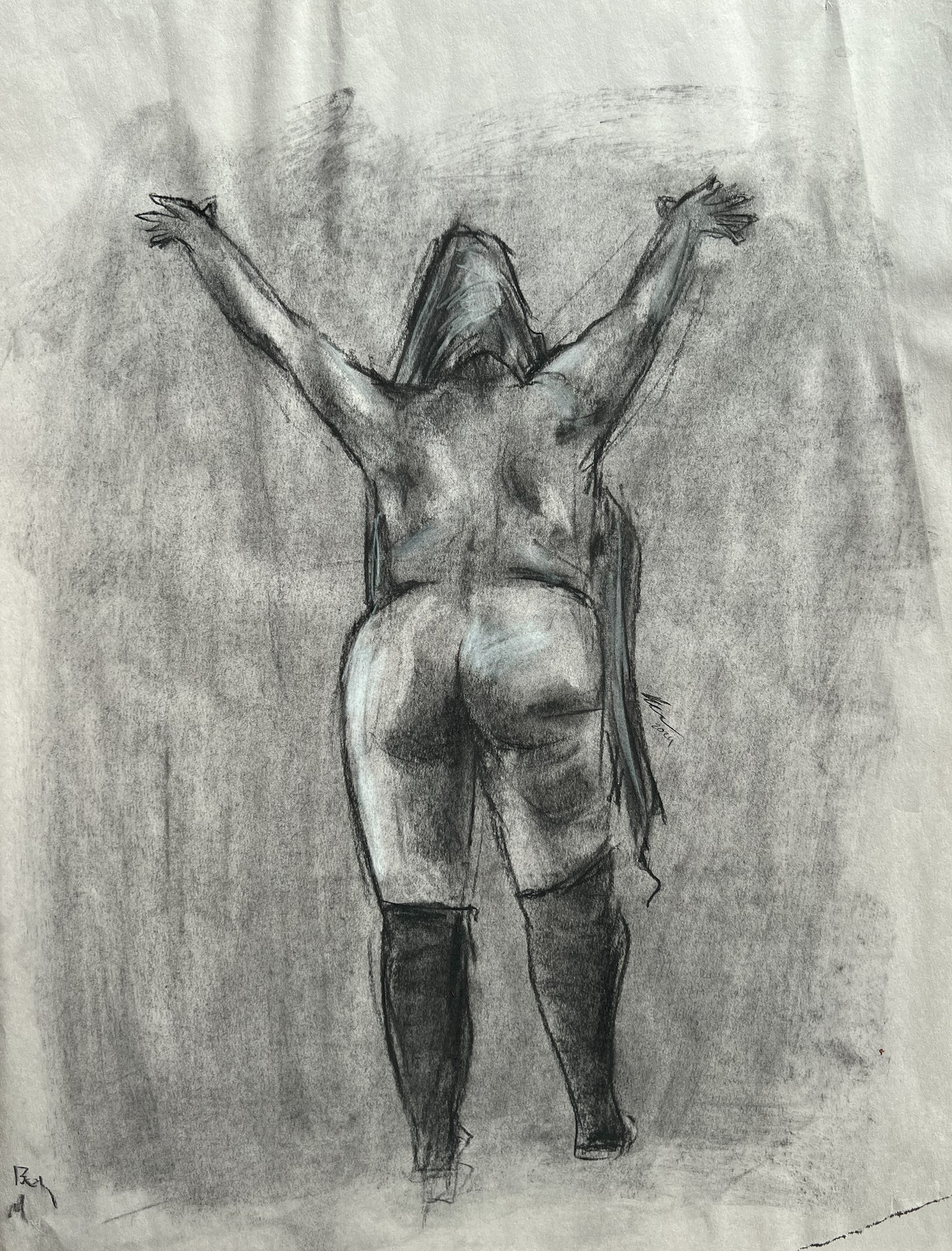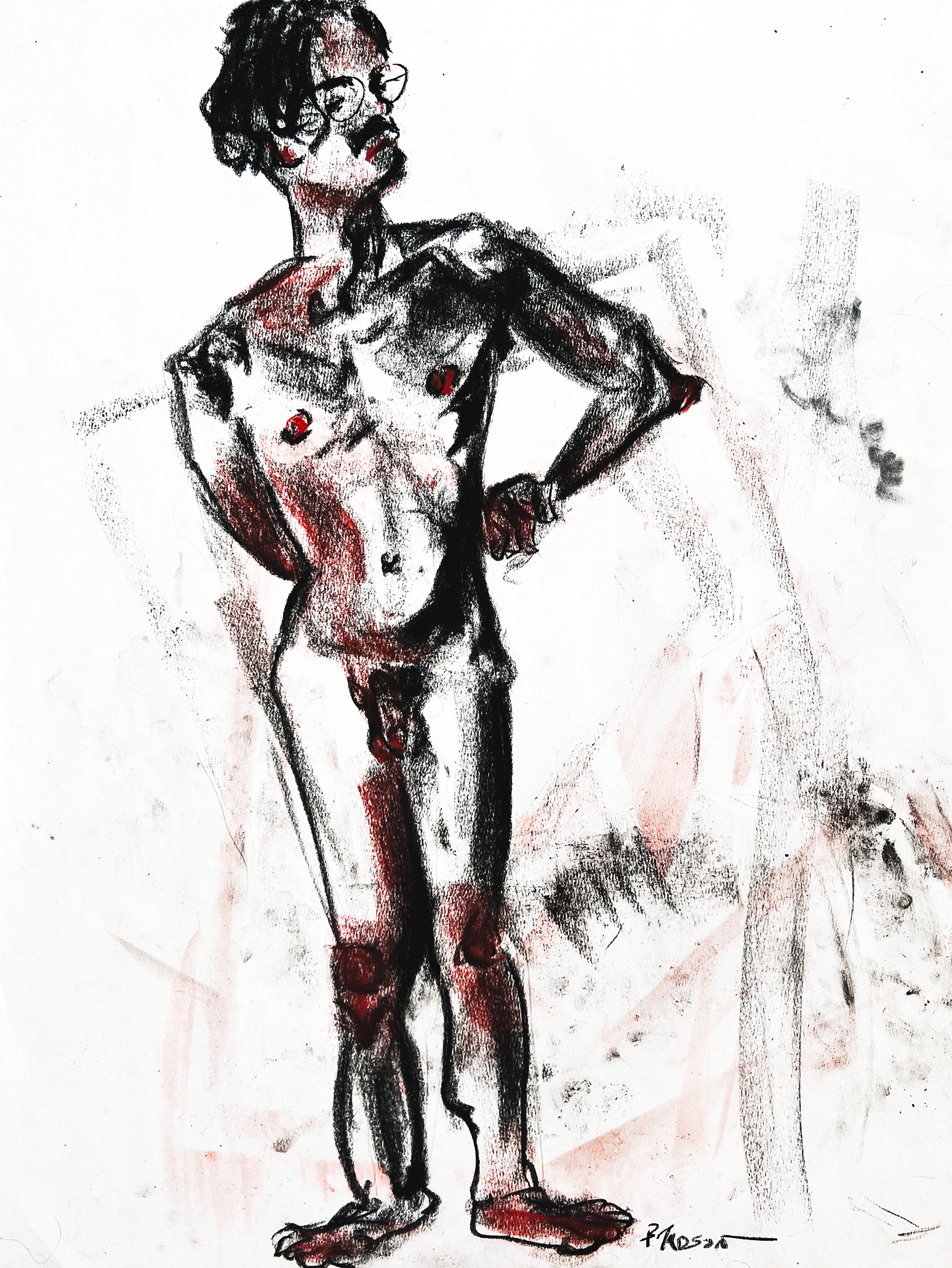 July 2024 to February 2026. Charcoal, ink, marker, conte crayon, and Sharpie on paper.