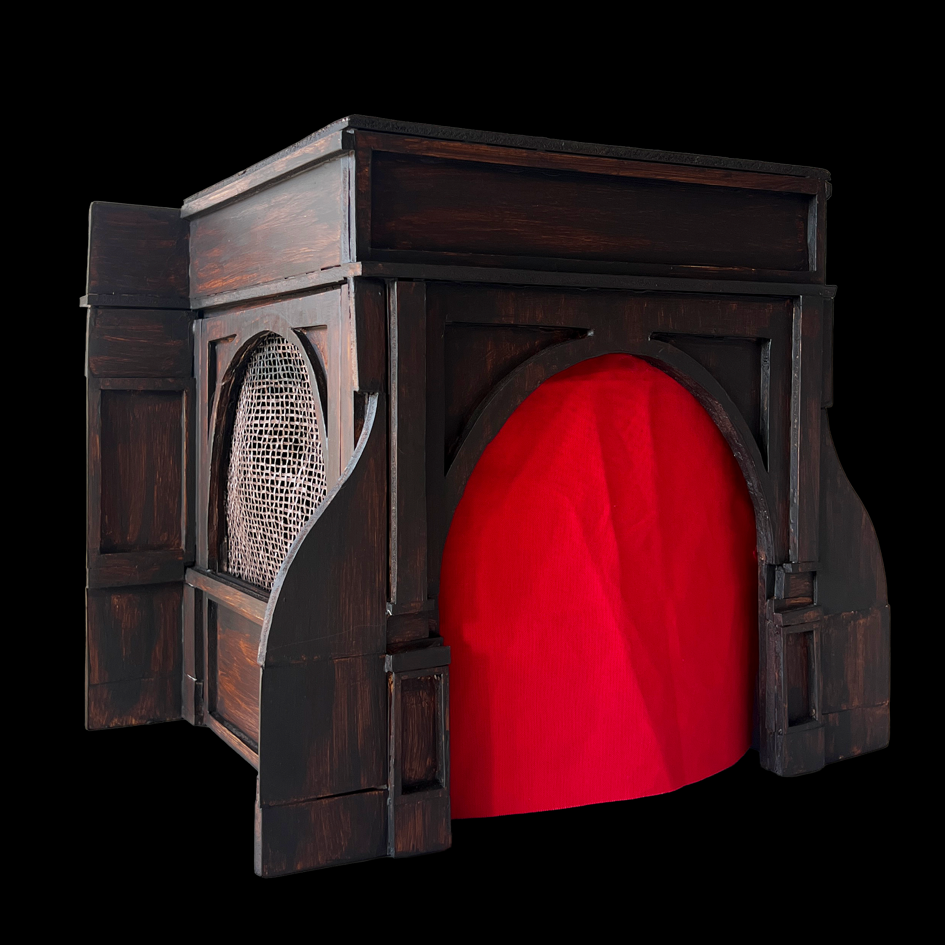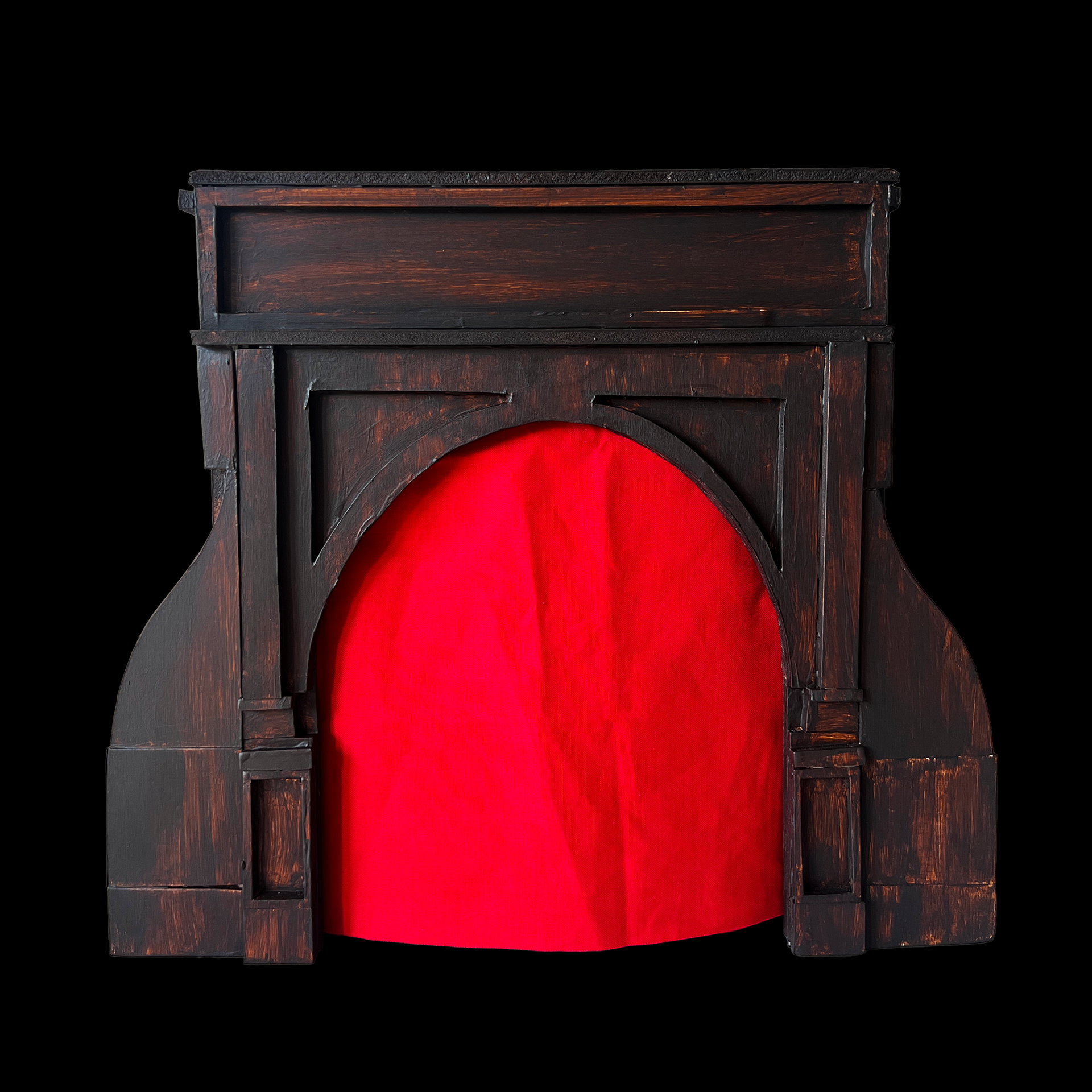 October 2025. Foam core, papier-mâché, cloth, mesh fabric, mod podge, glue, craft paint, laser print on paper, book cover, and tape.